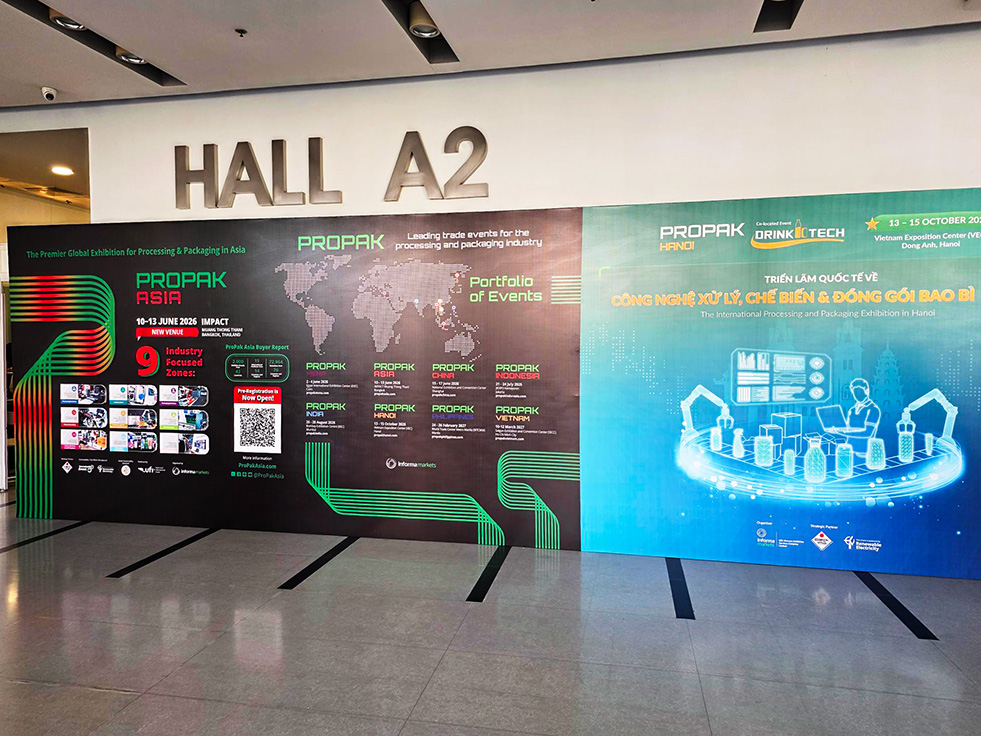 2026年3月31日〜4月2日の3日間、ベトナム・ホーチミンのSaigon Exhibition and Convention Centre (SECC)で開催された、同国最大級の製造・包装技術展示会「ProPak Vietnam 2026」に出展いたしました。今回の展示では、弊社が誇る最新の機械設備のパネル展示や動画に加え、実際に弊社機械製品をご利用いただいている取引先企業の商品もあわせて展示し、機械システム導入後の具体的な活用イメージを来場者の皆様にご提案いたしました。
